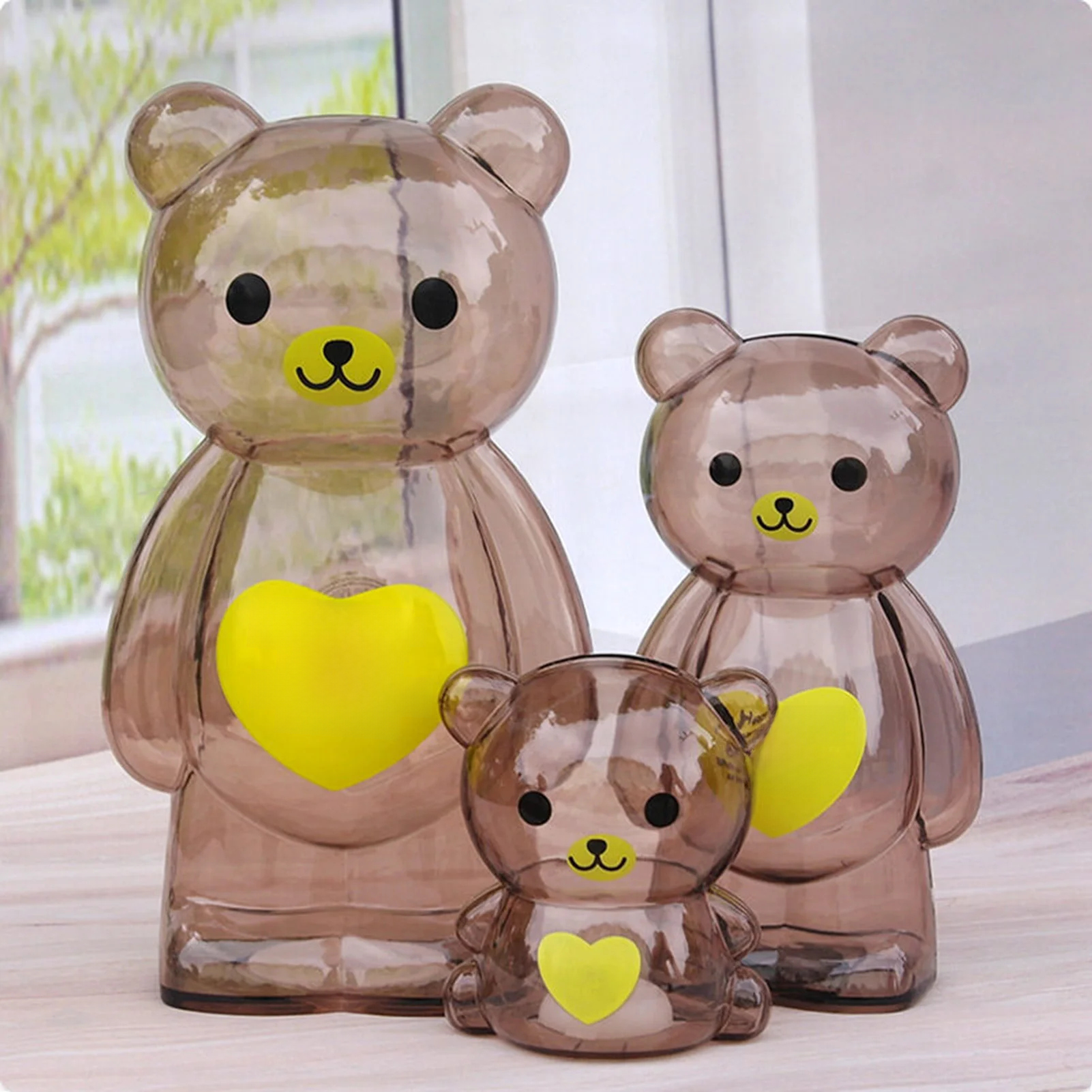 Plastic Coin Piggy Banks Bear Piggy Shape Transparent Cartoon Money Bank Creative Gift for Kids Perfect for Kids Birthday Gift