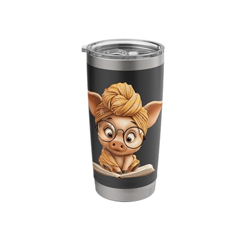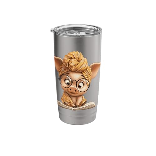 Cute Pig Reading Book with and Turban Stainless Steel Insulated Tumbler