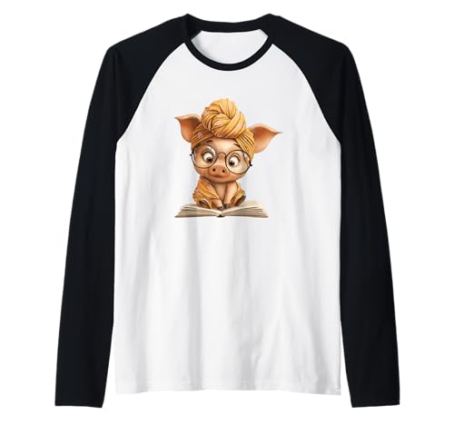 Cute Pig Reading Book with and Turban Raglan Baseball Tee