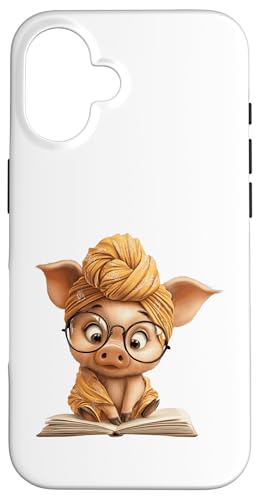 Cute Pig Reading Book with and Turban Case for iPhone 16