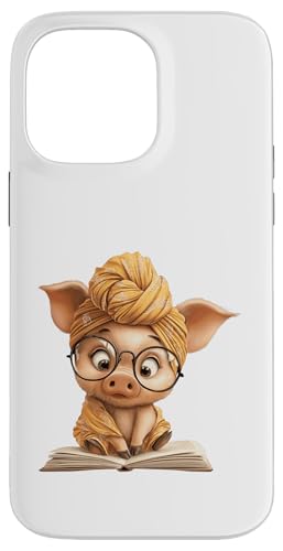 Cute Pig Reading Book with and Turban Case for iPhone 14 Pro Max