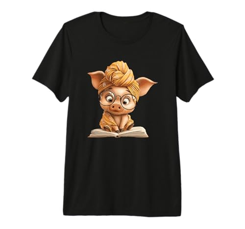 Cute Pig Reading Book with and Turban Premium T-Shirt
