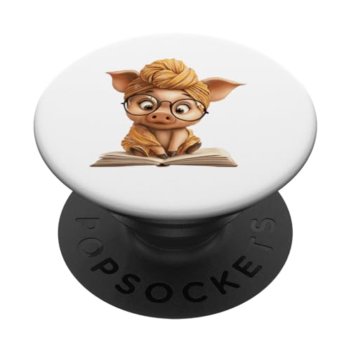 Cute Pig Reading Book with and Turban PopSockets Adhesive PopGrip