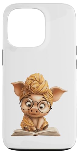 Cute Pig Reading Book with and Turban Case for iPhone 13 Pro