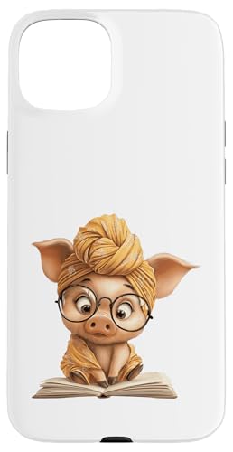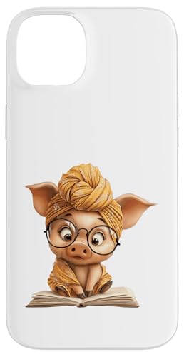 Cute Pig Reading Book with and Turban Case for iPhone 15 Plus