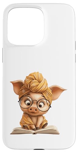 Cute Pig Reading Book with and Turban Case for iPhone 15 Pro Max
