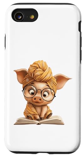 Cute Pig Reading Book with and Turban Case for iPhone SE (2020) / 7/8