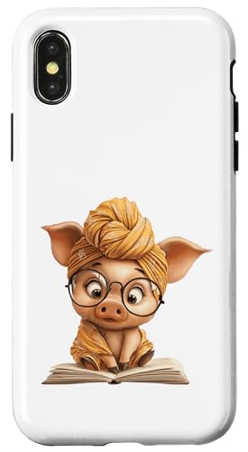Cute Pig Reading Book with and Turban Case for iPhone X/XS