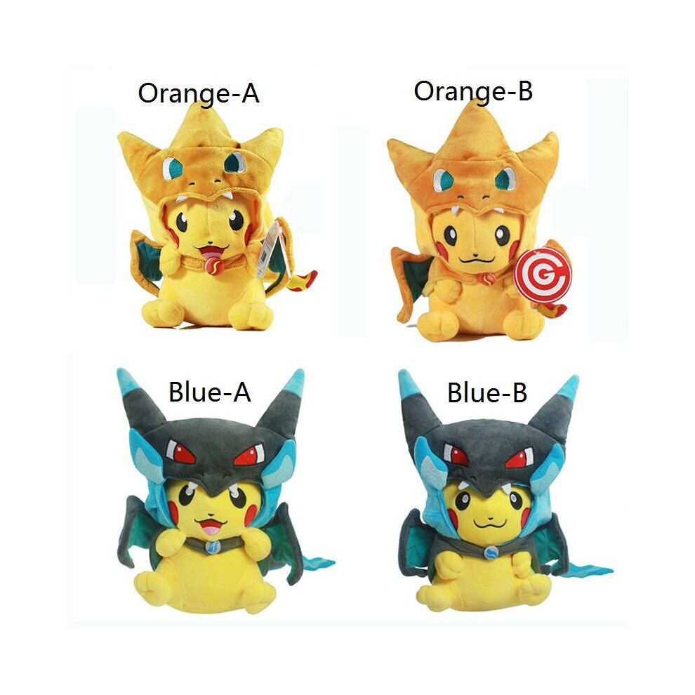 (Orange-A+Blue-A) Pikachu Cosplay Plush Toys Mega Pokemon Cos Charizard Soft Stuffed Kids Toy