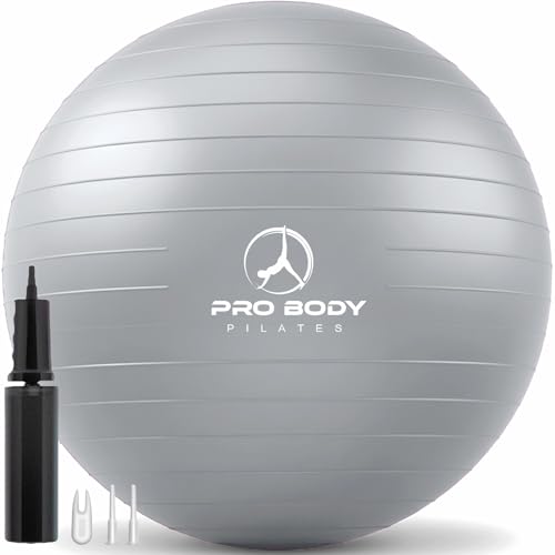ProBody Pilates Exercise Ball, Multiple Sizes Gym Grade Yoga Ball for Pregnancy, Fitness, Balance, Workout at Home, Office and Physical Therapy (Silver, 65 cm)