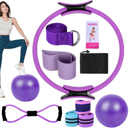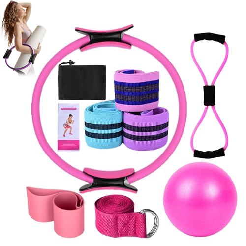 Generisch Pilates Kit, Home Pilates Kit, Pilates Ring and Ball Set - Yoga Bands, Home Equipment, Stretch Belt, Multifunctional Training Accessories for Adults Women