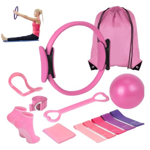 Besseling Pilates Kit 13 pcs, Pilates Essential Kit for Home Workouts, 12” Pilate Circle Yoga Ring, Pilates Ball, Resistance Bands, Pilates Socks, Pilates Sets for Women Gift (pink)