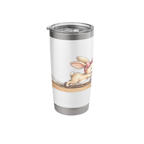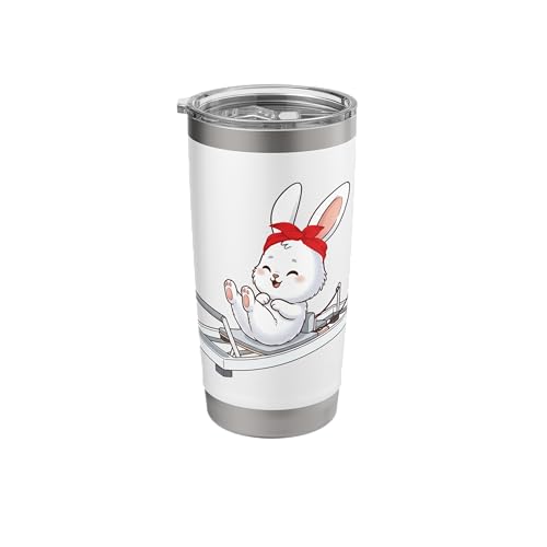 Cute Bunny Doing Reformer Pilates Machine Easter Pilates Stainless Steel Insulated Tumbler