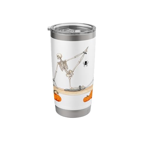 Skeleton Doing Reformer Pilates Machine Pumpkin Halloween Stainless Steel Insulated Tumbler