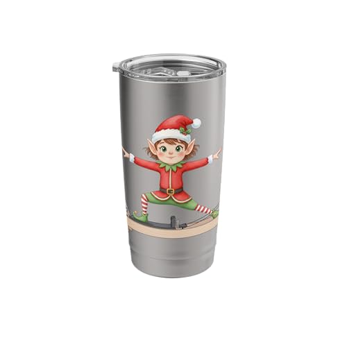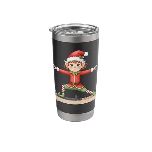 Cute Elf Doing Reformer Pilates Machine Christmas Pilates Stainless Steel Insulated Tumbler