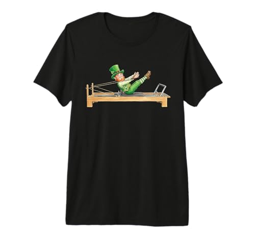Funny Leprechaun Doing Pilates Reformer Machine St. Patrick Premium T-Shirt
