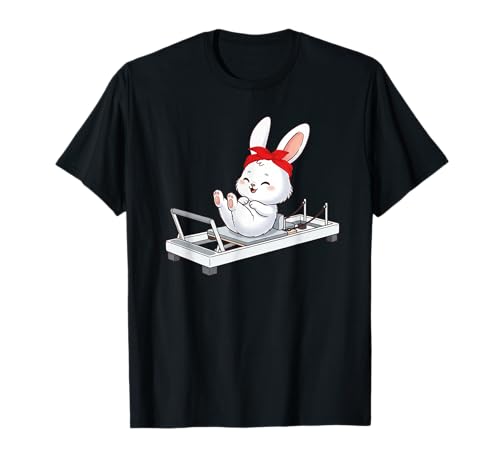 Fluffy Easter Bunny Doing Pilates Reformer Machine Pilates T-Shirt