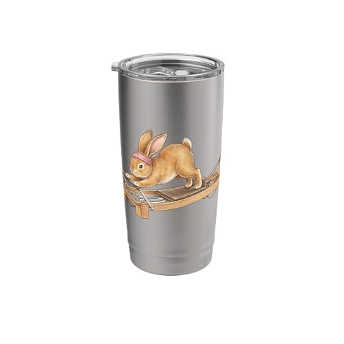 Cute Bunny Doing Pilates Reformer Machine Easter Rabbit Stainless Steel Insulated Tumbler