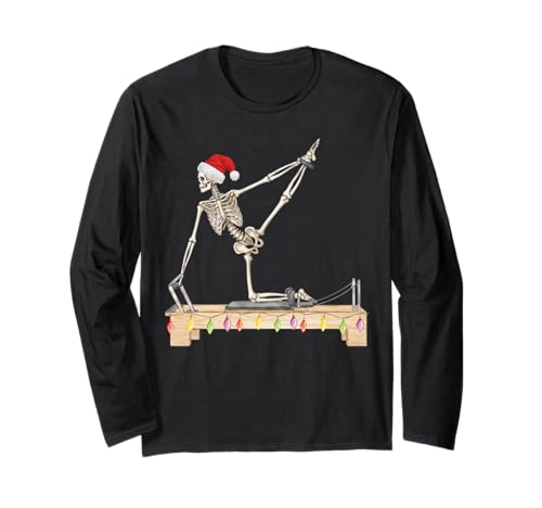 Skeleton Doing Reformer Pilates Machine Pumpkin Christmas Long Sleeve T-Shirt