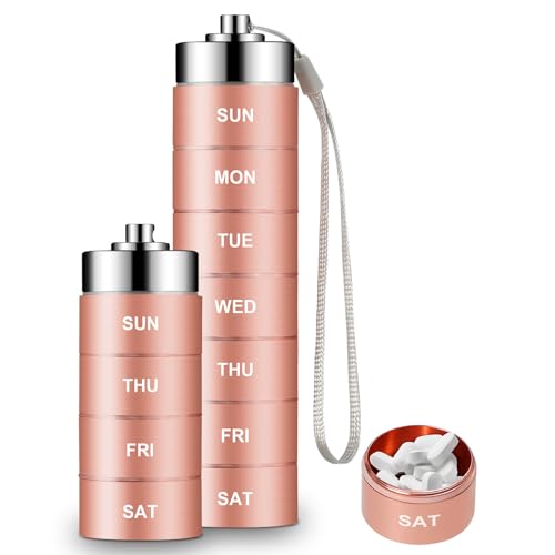 Metal Pill Organiser,Stackable Travel Pill Boxes 7 Day 1 Times a Day,Small Pill Box Organizer,Daily Pill Tablet Box for Pills,Medicine,Vitamin,Capsules,Fish Oil,Supplement (Pink)