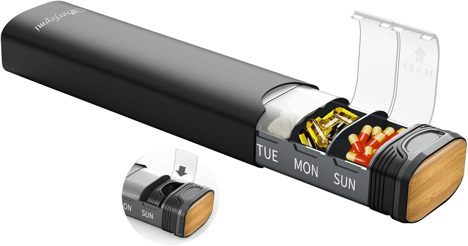 Pill Organiser, Aluminium Alloy Pill Boxes 7 Day 1 Times a Day, Waterproof Trav