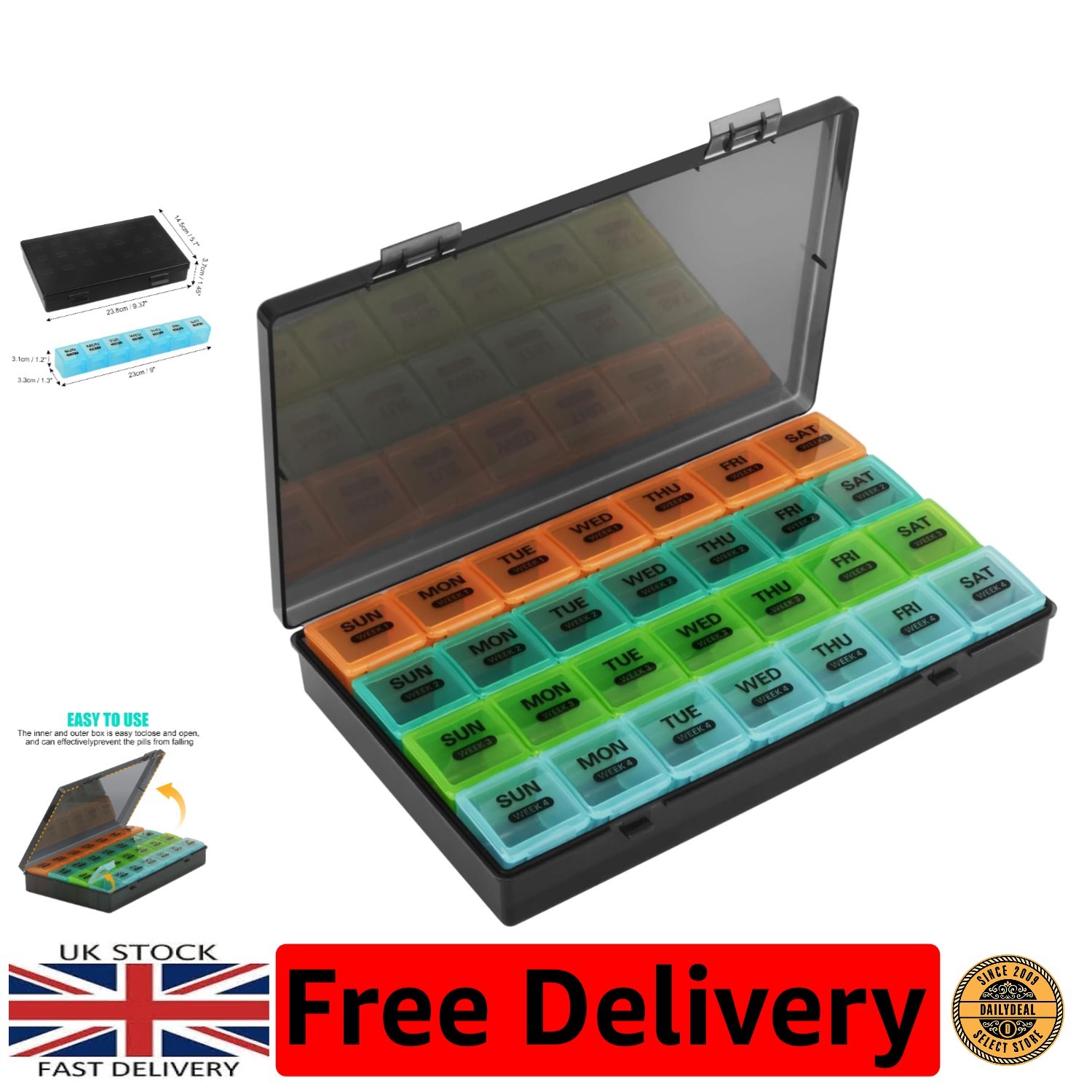 Monthly Pill Box Organiser,4 Week 28 Day Large Pill Box Organiser,Pill Boxes,Pi