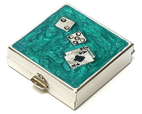 Speert Durable & Portable Metal Pill Boxes Model 9339 in Green Casino Cards Dice