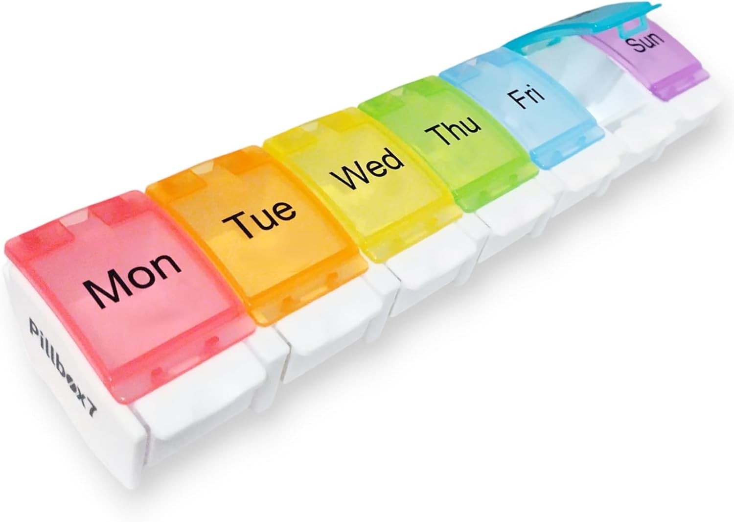 PILLBOX7 Weekly Pill Box 7 Day Monday - Sunday | Pill Boxes 7 Day 1 Times a Day, Pill Organiser Premium Quality, Tablet Organiser Spring Open Design for Your Pills, Vitamins, Medicine Organiser