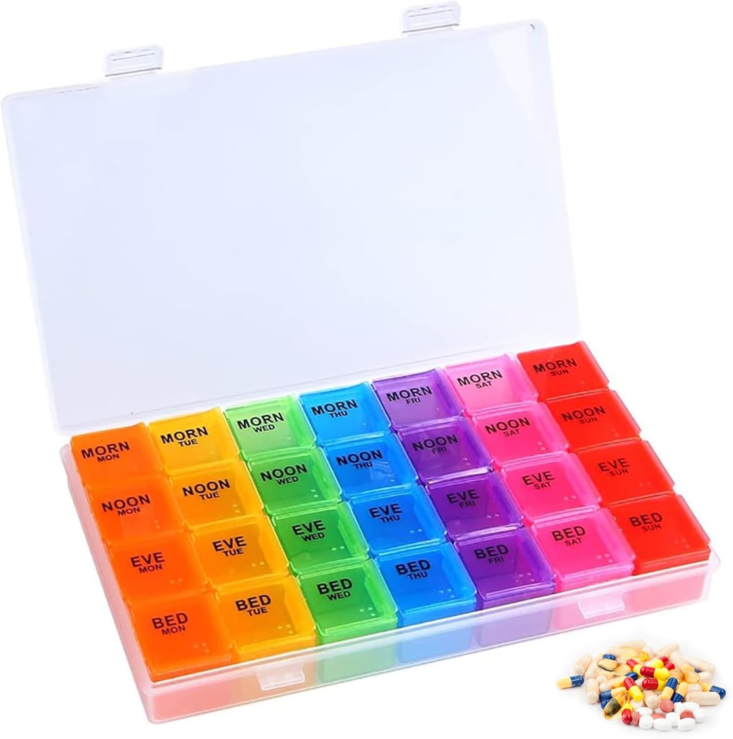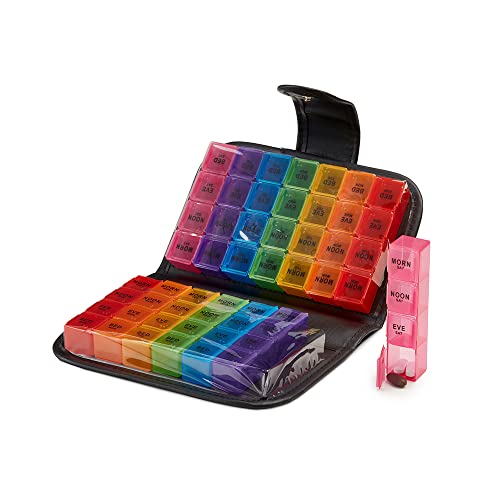Weekly Pill Box Organiser - 7 Day 4 Times a Day - Colourful Compartments, Large