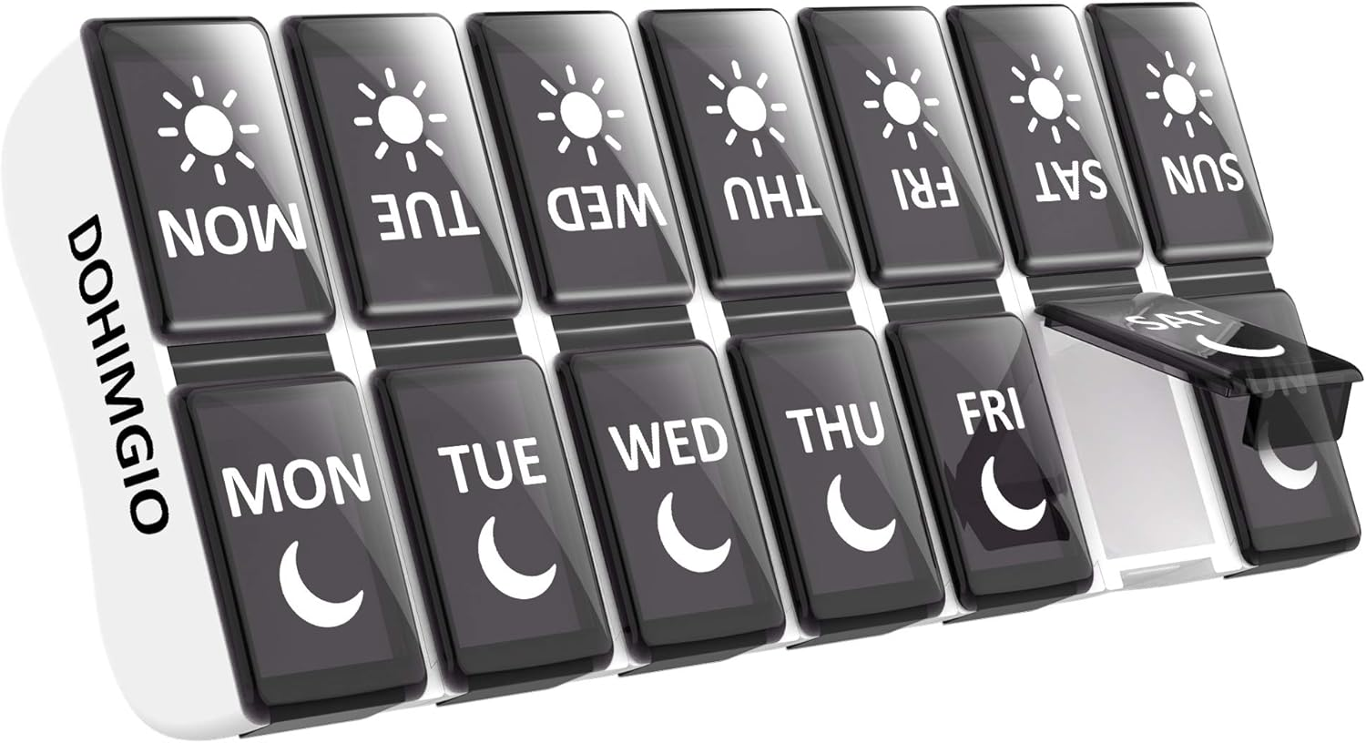 Zoolion Weekly Pill Box 7 Day 3 Times a Day (Morn/noon/Night), Daily Portable Travel Pill Box Organiser, Tablet Organiser with Large Compartments, Hold for Fish Oils, Vitamins, Supplements (Black)