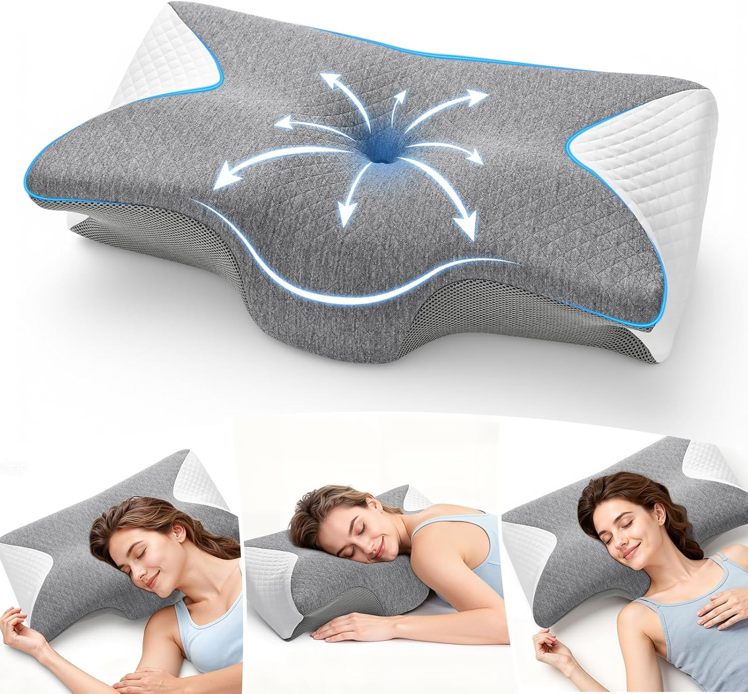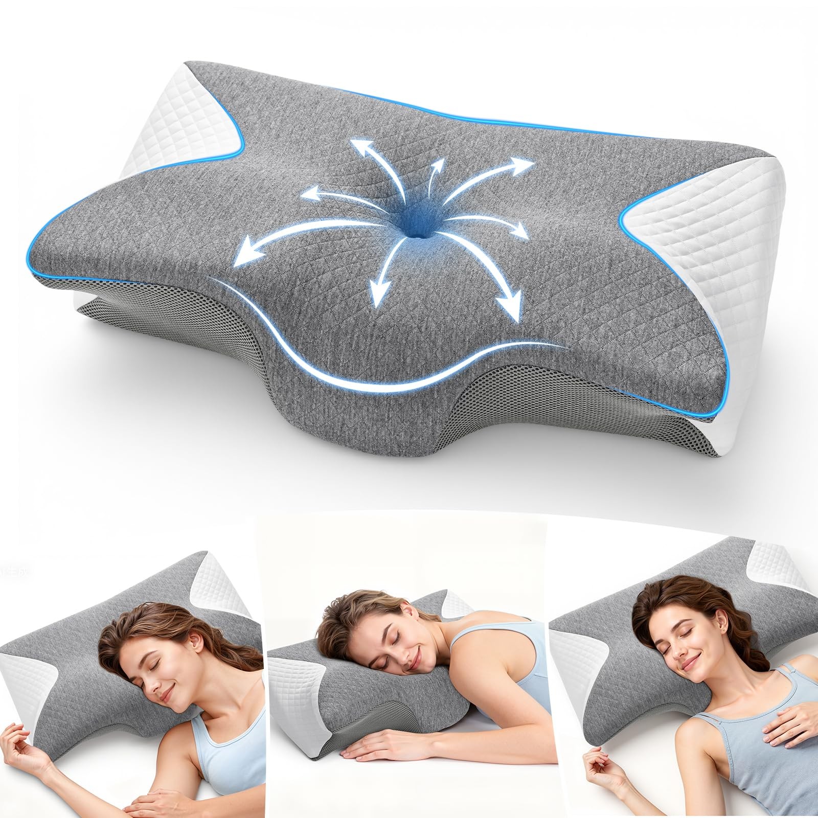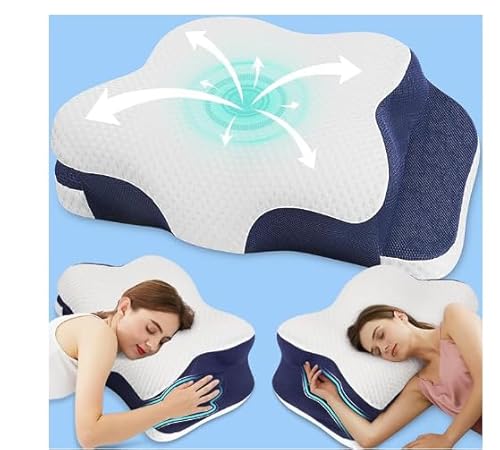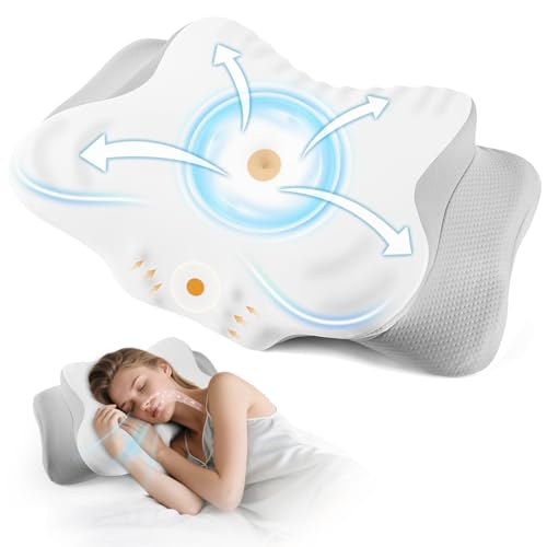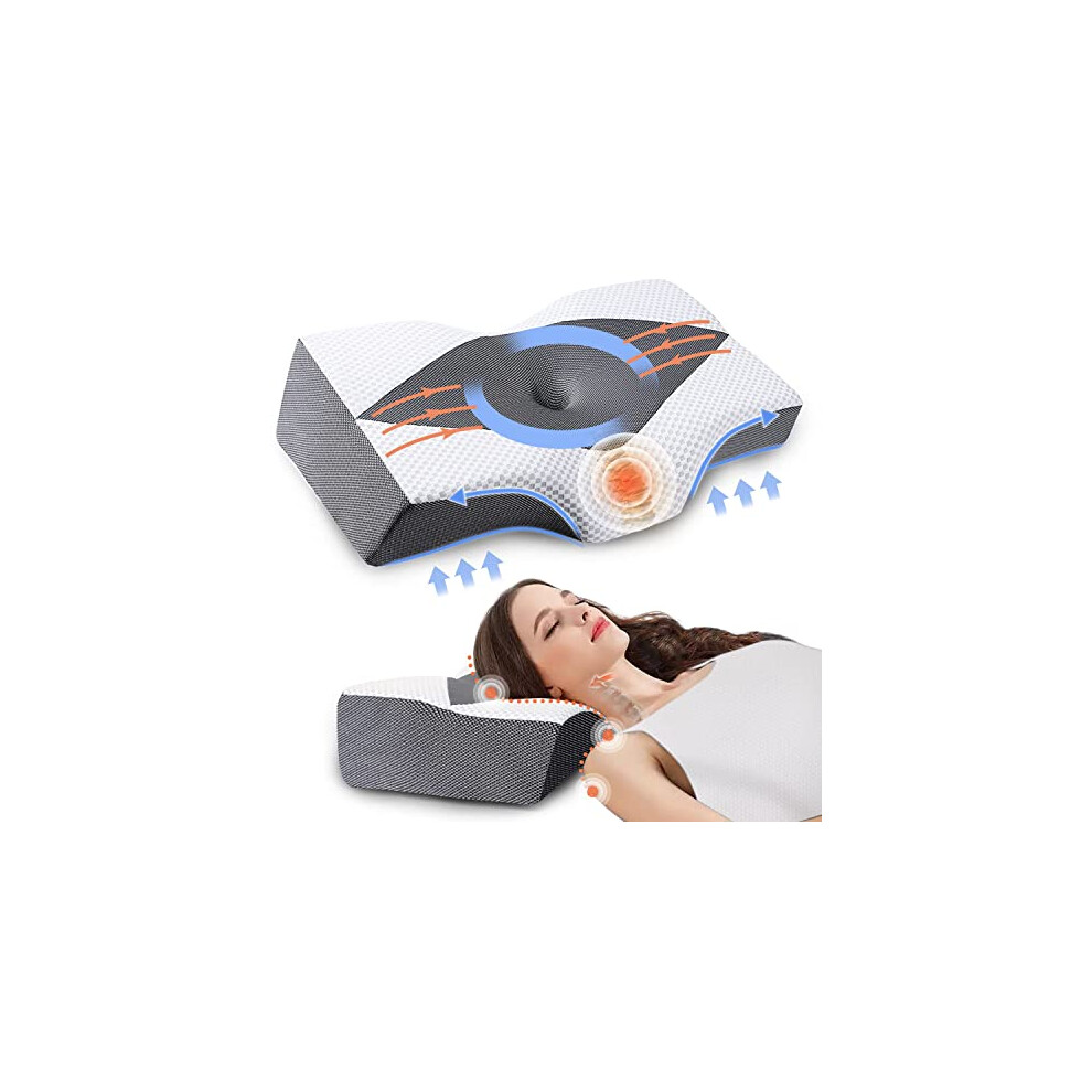 Elviros Orthopedic Cervical Neck Pillow for Neck and Shoulder Pain Relief, Ergonomic Pillow for Side/Back/Stomach Sleepers, Memory Foam Butteryfly Pillow for Sleeping with Cooling Breathable Cover