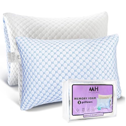 MH Traders 100% Shredded Memory Foam Pillows 2 Pack Cooling & Bamboo Pillow Cover Bed Pillows Adjustable height Breathable & Machine Washable pillow for Neck & Shoulder Pain (50x75 cm)