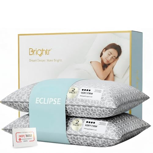 Brightr®️ ‘Eclipse’ 2 Pack Memory Foam Pillow for Neck and Shoulder Pain | Height Adjustable Pillow for Side Sleepers | Osteopath Recommended | Skin Cooling | Anti Dust Mite | Very Firm
