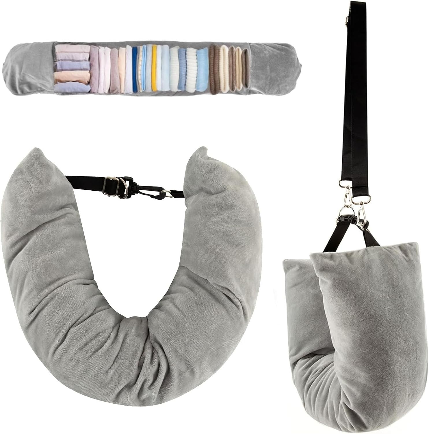 KDJXZ Stuffable Neck Pillow for Travel,Neck Pillow Stuffable with Clothes, Travel neck pillows With Adjustable Straps, Soft Neck Pillow Fillable Go Travel for Essentials Extra Luggage (1, Grey)