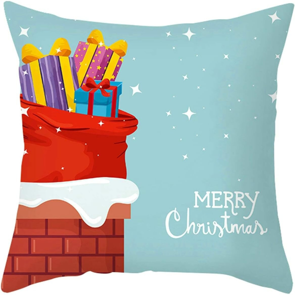 Pillowcase Protectors, Merry Christmas Chimney Gift Bag Pillow Covers 40x40cm Pillowcase for Christmas Light Blue Red