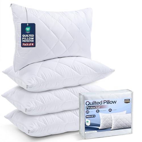 K&A® Quilted Pillow Protectors 4 Pack Zipped | Ultra Luxe, Soft, Noiseless and Breathable Microfiber Pillowcase Protectors | Hypoallergenic and Anti Dust Mite Pillow Protector | UK Standard 48x74 CM
