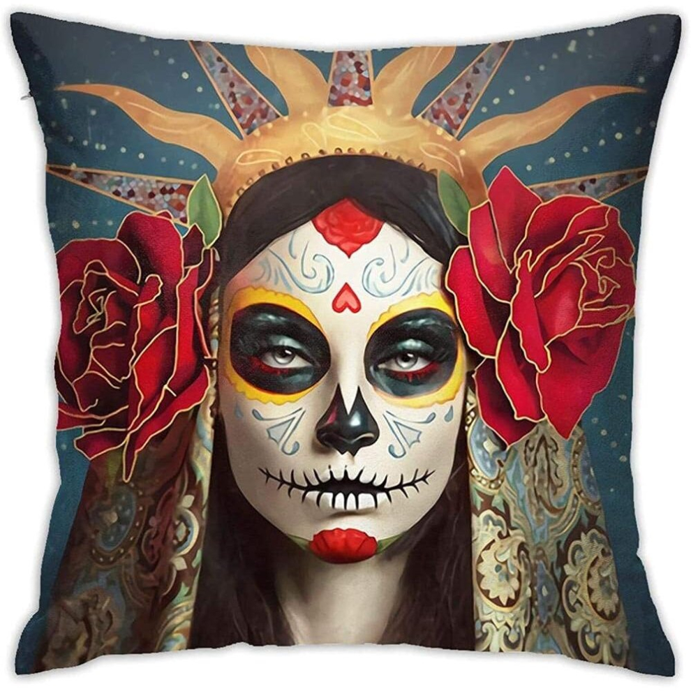 Mexican Sugar Skull Printed Cushion Cover Pillow Cases Square Sofa Waist Chair Home Office Bar Car Decor Throw Pillowcase Protectors 18 * 18 Inches