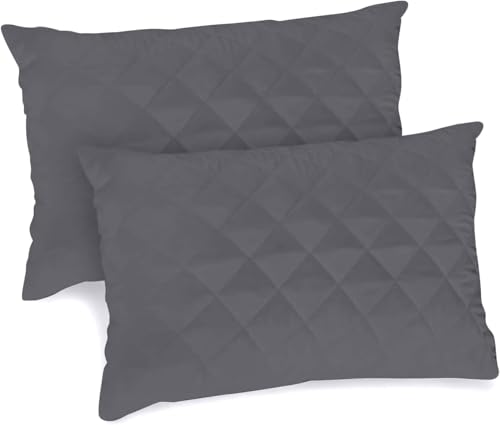 GC GAVENO CAVAILIA Quilted Pillow Protectors with Envelope Closure - Polycotton Soft, Anti Allergy Breathable Pillowcase Protectors - Luxury Bed Pillow Protector Cover 50x75 cm - Charcoal