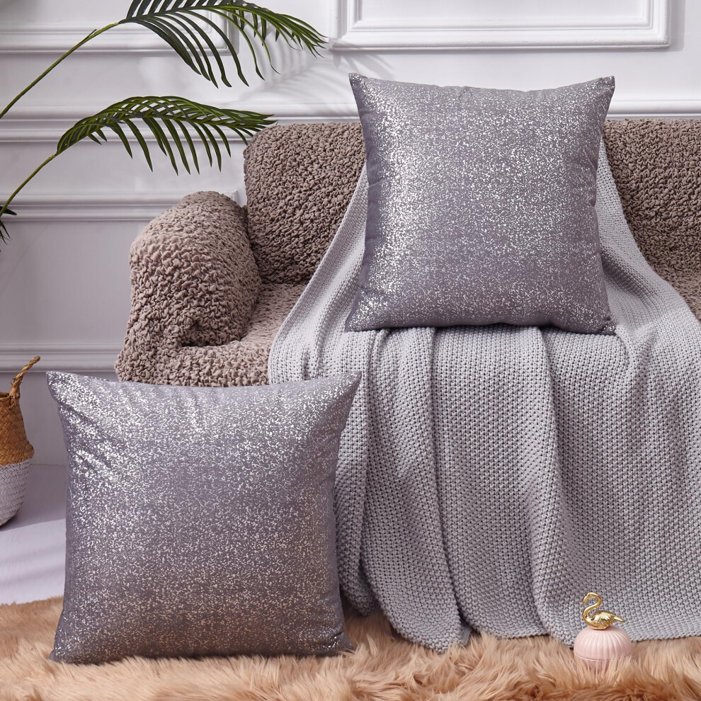 EUCIOR Grey Pillow Covers Set of 2 Gray and White Throw Pillows Decor Soft Velvet Hidden Zipper Closure Accent Velvet Gray Pillow Covers 18x18 for Co
