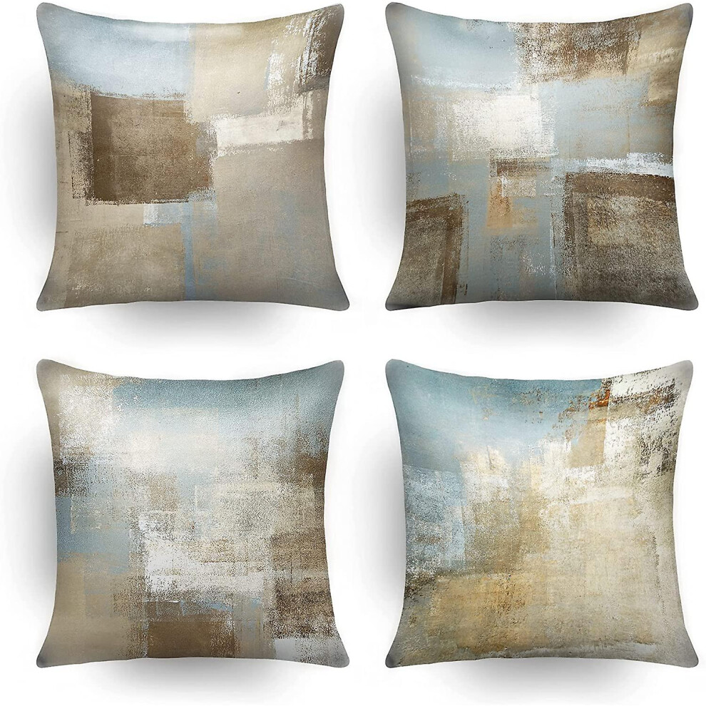 Elegant Square Pillow Covers, Gray and Blue Abstract Art Decorative Throw Pillows for Modern Home Decor, 18x18 Inch (45x45cm) Set, Reinforced Stitchin