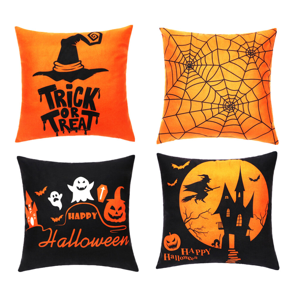 Unique Halloween-Themed Designs, Durable Soft Skin-Friendly And Breathable Fabric, Happy Halloween Decorative Pillows For Outdoor Indoor Decor (Set