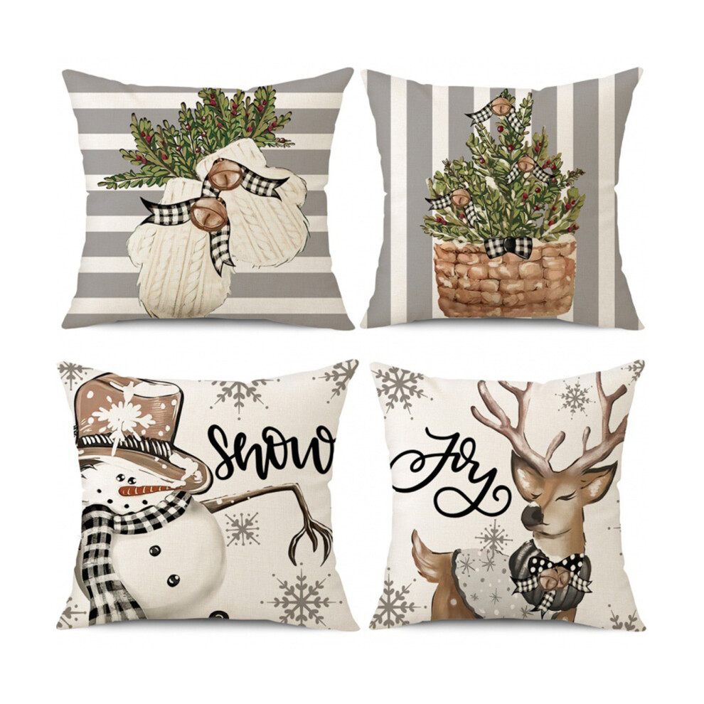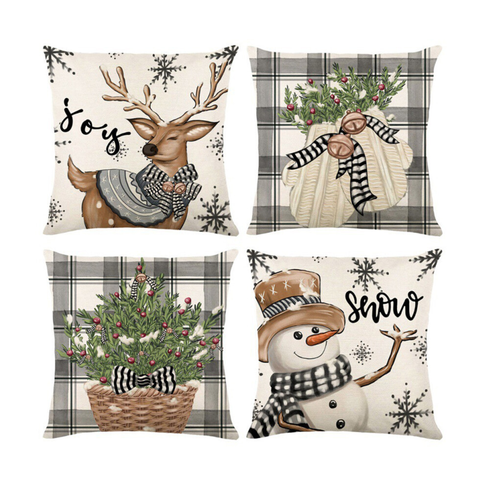 (Christmas series 01) 4pcs Linen Throw Pillows For Home Decor Thick And Soft Cushion Cover