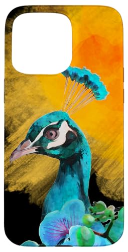 Yellow, Peacock throw pillows, decorative decor, Green Case for iPhone 15 Pro Max