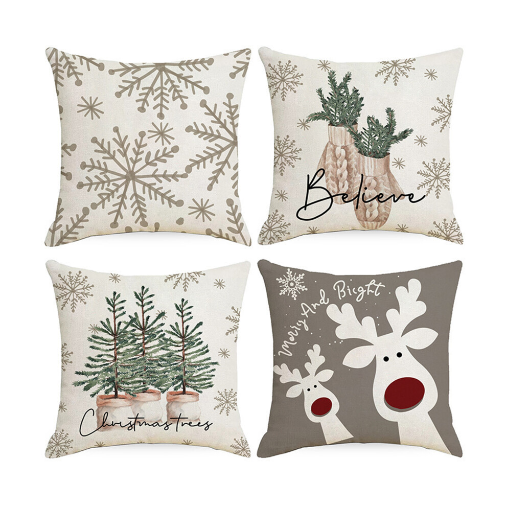 (Christmas series 04) 4pcs Linen Throw Pillows For Home Decor Thick And Soft Cushion Cover
