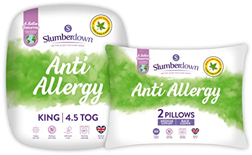 Slumberdown Anti Allergy King Size Duvet - 10.5 Tog All Year Round Quilt Ideal for Summer & Winter, 2 Medium Support Pillows - Anti Bacterial, Soft Touch Cover, Machine Washable, Size (225cm x 220cm)