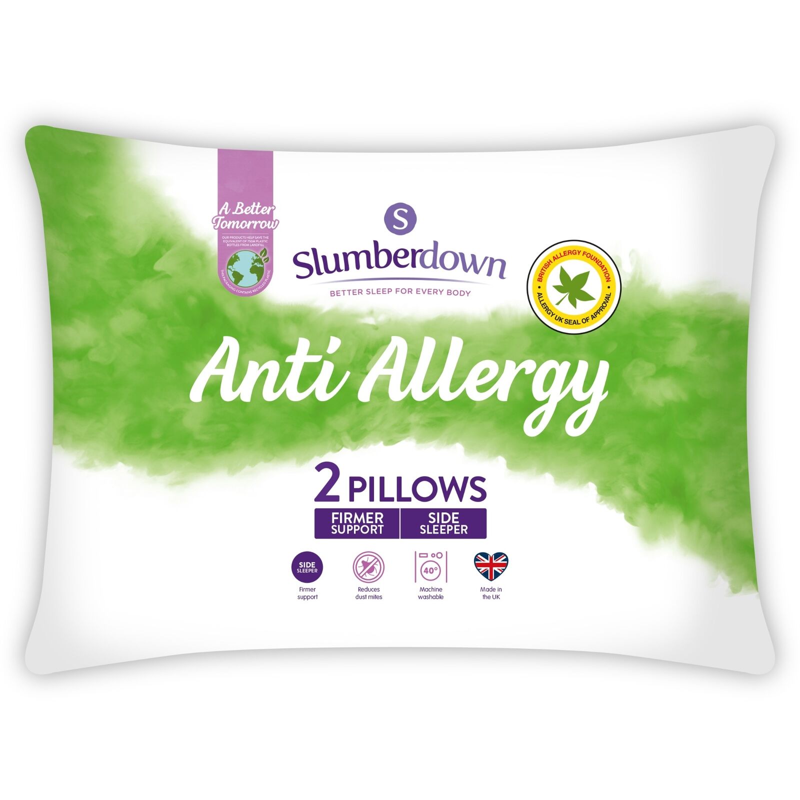 Slumberdown Anti Allergy Pillows 2 Pack - Allergy UK Approved Front Sleeper Soft Pillows for Allergy Sufferers | Anti Bacterial Soft Touch Cover, UK-Made & Washable (48 x 74cm)