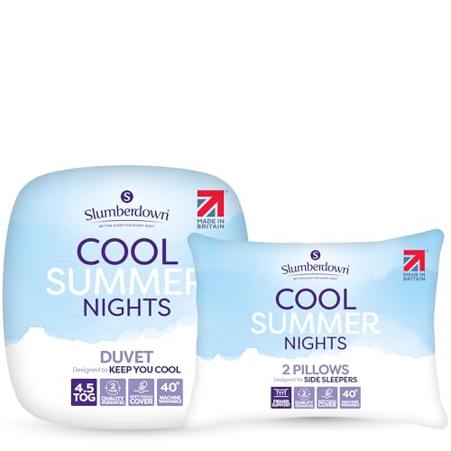 Slumberdown Cool Summer Nights 4.5 Tog Double Duvet & 2 Pillows - Lightweight & Breathable Summer Duvet for Hot Nights | UK-Made Double Quilt, Non-Allergenic & Washable (200 x 200cm)