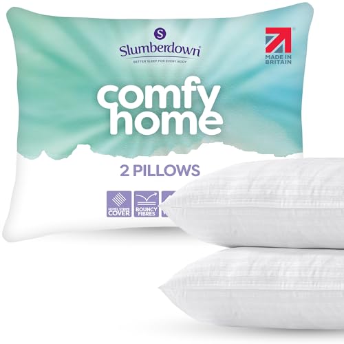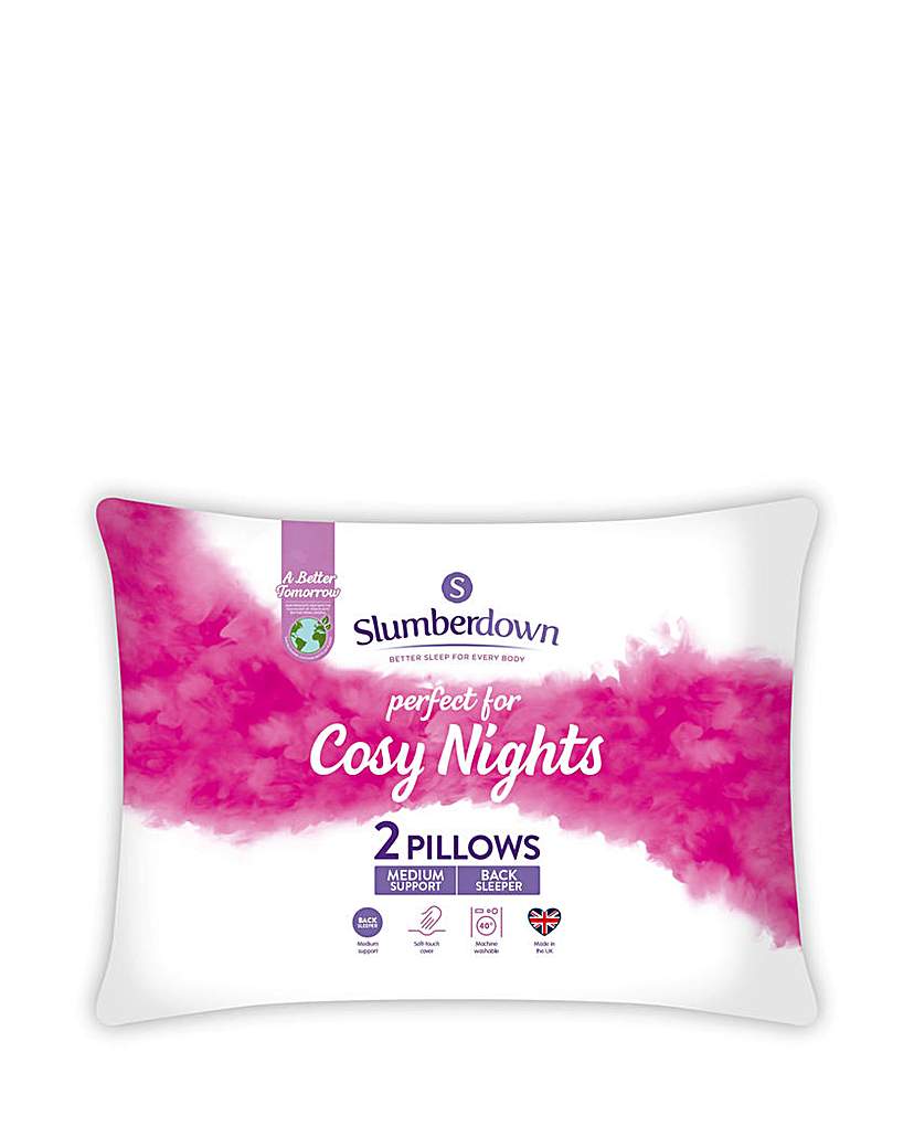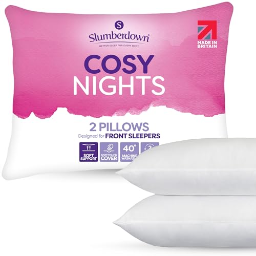 Slumberdown Cosy Nights Bed Pillows 2 Pack Non-Allergenic Ultra Soft Front & Back Sleeper Pillows - Soft Touch Breathable Cover, Made in the UK & Washable, Packaging May Vary (48 x 74cm)