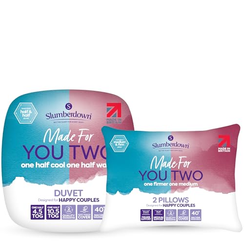 Slumberdown Made For You Two King Size Duvet & 2 Pillows - Half 4.5 & Half 10.5 Tog King Quilt for Couples with Different Sleep Temperatures | UK-Made, Non-Allergenic, Washable (225 x 220cm)
