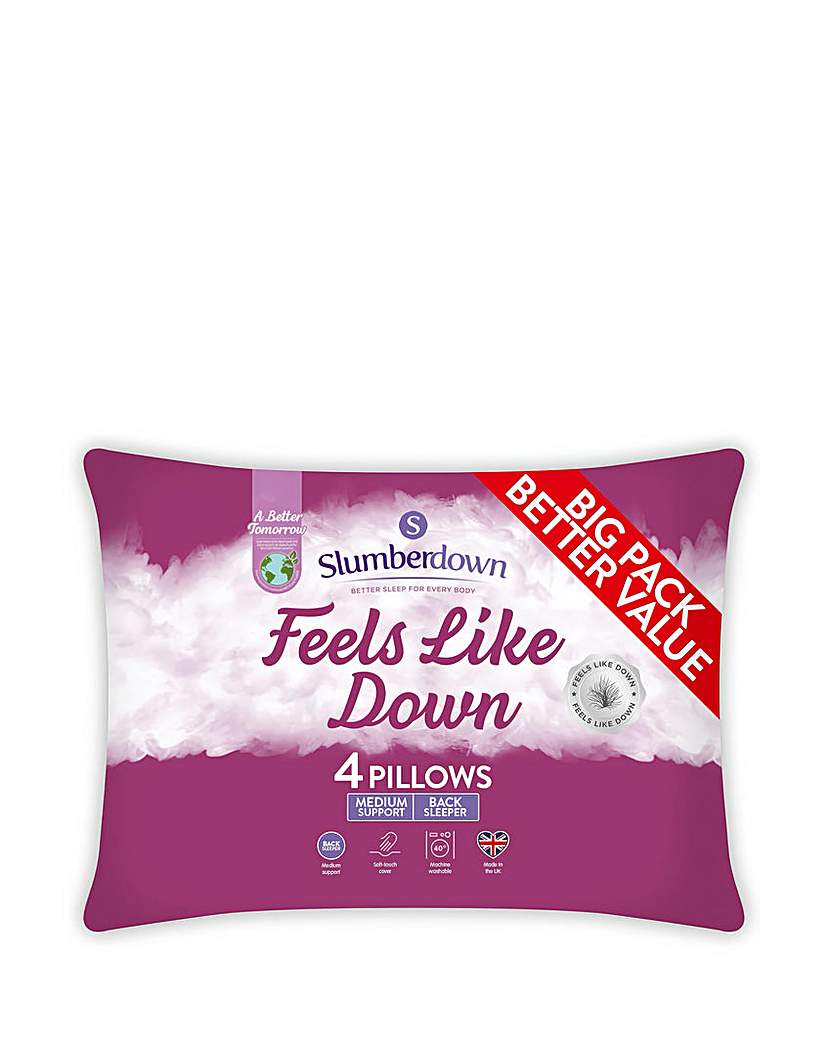 Slumberdown Feels Like Down Pillows 4 Pack - Ultra-Soft Down Alternative Pillow for Front, Back & Side Sleepers | UK Made, Non-Allergenic, Machine Washable (48 x 74cm)